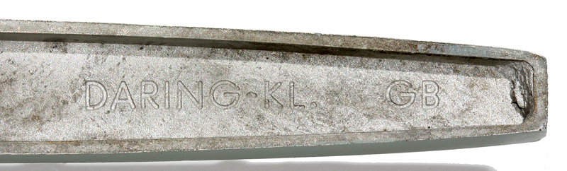 Mit BP "WM DARING-KL. GB", grau, mit und ohne Wasserpass. Auf dem Gefechtsturm