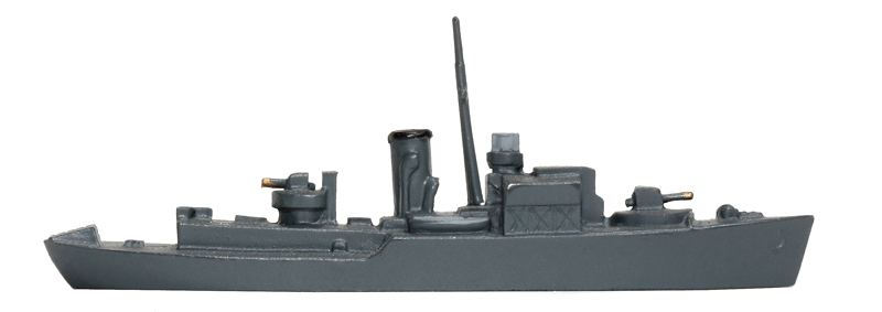 1974 - 1975   HG, Metall, BP "WM BLUEBELL". Dunkelgraublau - graubraun, 2 Geschütze, 1 Kunststoffkreuzmast hinter der Brücke. Eines der letzten Wiking-Modelle