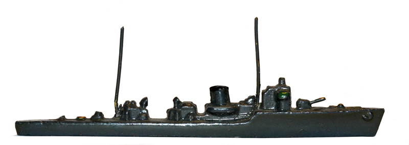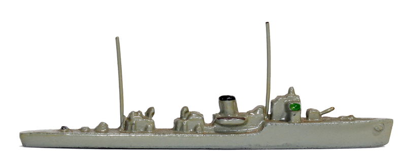 "1/3". Grau, sandgrau und dunkelgrau. 1 Geschütz mit Drahtrohr, 2 Drahtmasten |